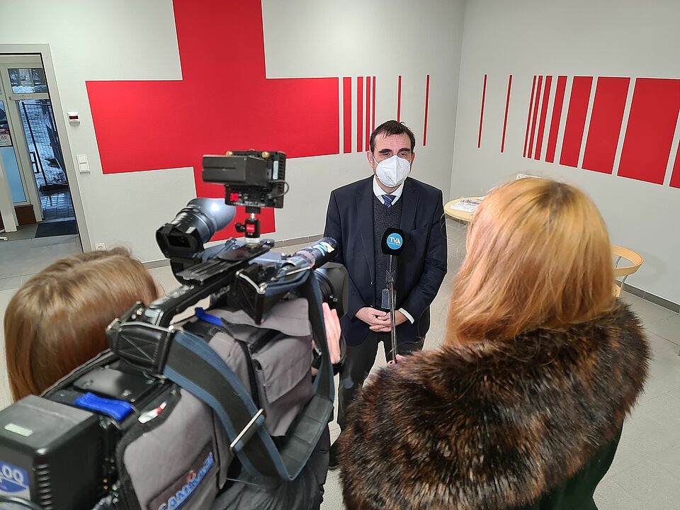 Holetscheks Besuch in der Further Straße war, wie Theo Zellner sagte, der erste offizielle Termin in der neuen BRK-Kreisgeschäftsstelle. Eröffnungsfeierlichkeiten hatten in den 2020 bezogenen Räumen wegen der Corona-Lage bisher nicht stattfinden können. Wie angespannt die Situation im Land immer noch ist, zeigte Zellner in eindringlichen Worten auf. Der BRK-Präsident sprach von einer „Zeit der Unsicherheit“ und einer „Gemengelage, die es nicht einfach macht“. Dazu zählte er den Umstand, dass die Infektions- und Todeszahlen immer noch viel zu hoch seien, die aktuell auftretenden Virus-Mutationen und den „fehlenden Impfstoff“.