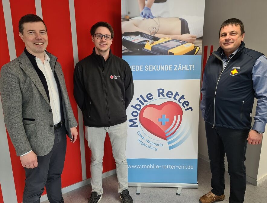 Cham. Die Ende Januar gestartete Initiative Mobile Retter, bei der Ersthelfer über eine Handy-App zu Menschen mit einem Herz-Kreislauf-Stillstand gelotst werden, um noch vor dem Rettungsdienst Erste Hilfe leisten zu können, ist im Landkreis Cham mit viel Schwung angelaufen. In einem Zwischenfazit zu der von der Vereinigung Mobile Retter Cham-Neumarkt-Regensburg getragenen Aktion äußerten sich BRK-Rettungsdienstleiter Dominik Lommer und Projekt-Koordinator Fabian Seebauer sehr zufrieden mit den Zahlen.
