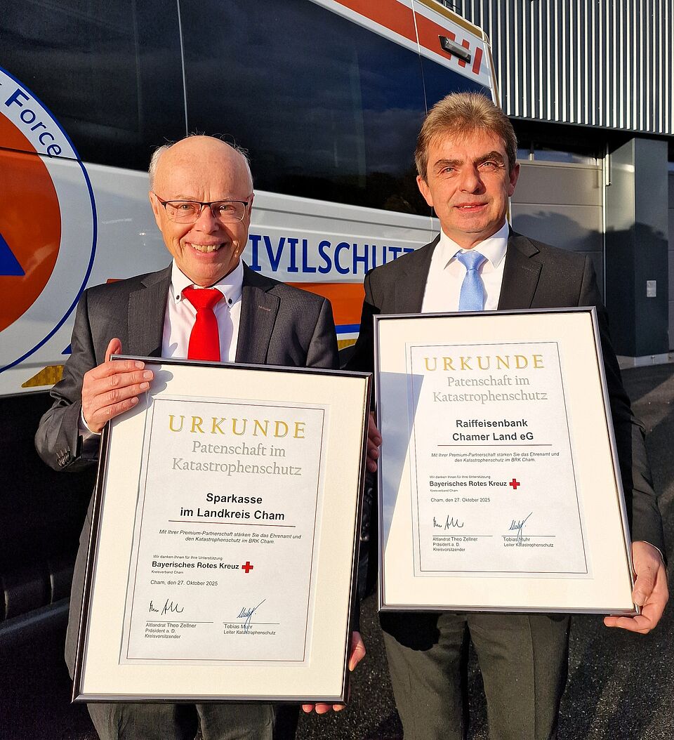 Weitere Firmen sollen nach Darstellung von Muhr in den nächsten Wochen hinzukommen. Der Katastrophenschutzleiter hat nach eigenen Angaben „zur Stärkung des Ehrenamts“ eine große Zahl an Betrieben im Landkreis Cham angeschrieben und zum Teil schon Termine für „die öffentlichkeitswirksame Übergabe von Patenschafts-Urkunden“ ausgemacht, wie sie zur Premiere für die Sparkasse und die Raiffeisenbank gestaltet worden waren.