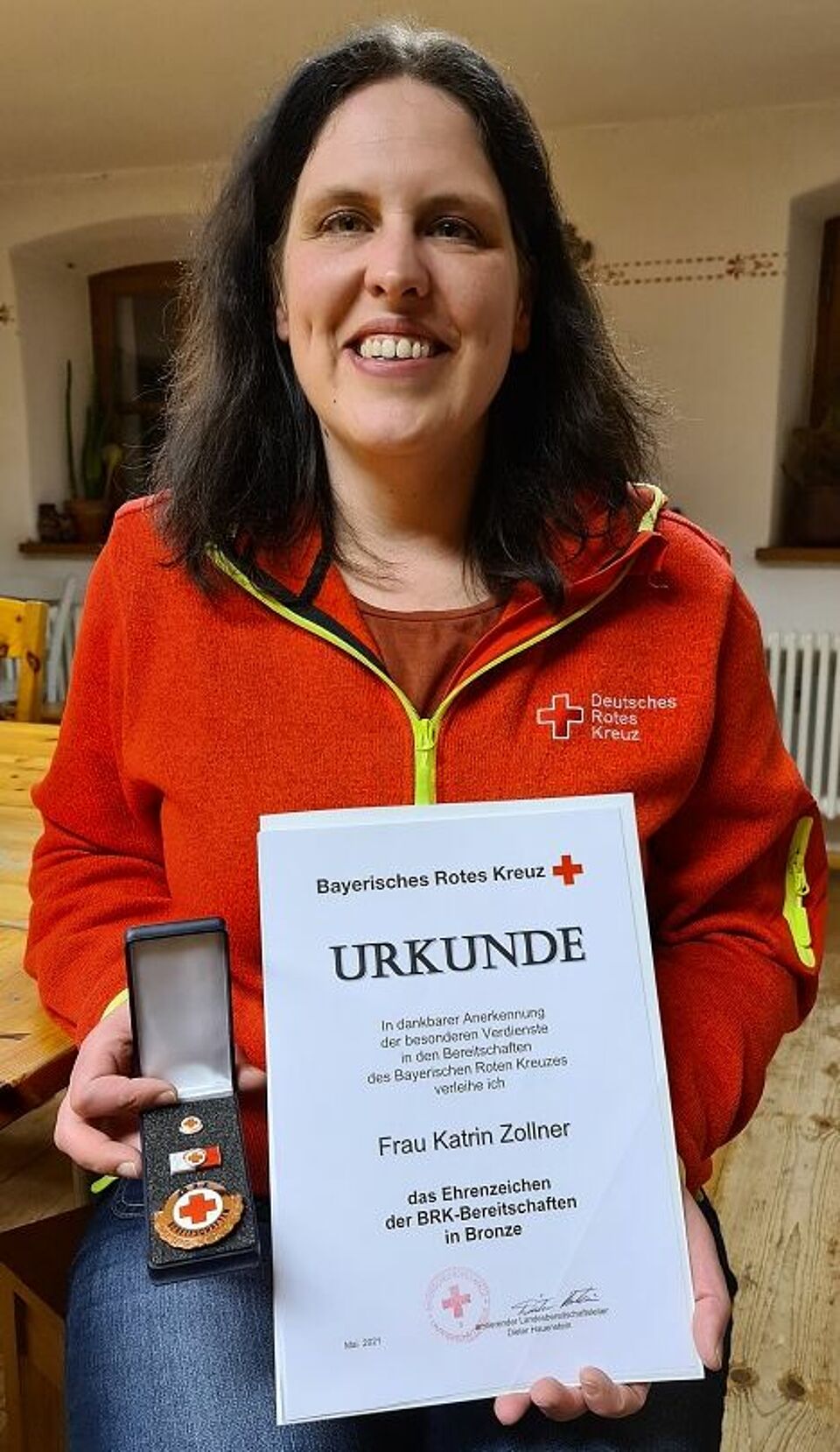 Winkler trug die Laudatio von Landes- und Bezirksbereitschaftsleiter Dieter Hauenstein vor, in der Zollner als „herausragende ehrenamtliche Mitarbeiterin“ mit „ausgezeichneten Fachkenntnissen“ gewürdigt wird. Durch ihr angenehmes Wesen verstehe sie es, andere Mitglieder zu motivieren und zu überzeugen. „Die Arbeitsleistung von Katrin Zollner im Haupt- und im Ehrenamt ist fortdauernd durch höchste Verlässlichkeit geprägt“, hieß es in den ehrenden Worten, die Winkler verlas.