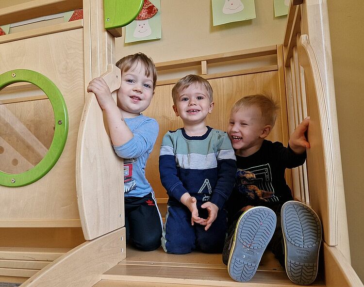 Seit September 2023 gibt es zwei Krippengruppen. Eine Vormittags- (Raupengruppe) und eine Nachmittagsgruppe (Schmetterlingsgruppe). Beide Gruppen teilen sich den Krippenbereich des Hauses.