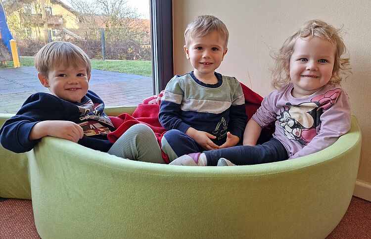 Im Außenbereich können sich die Kleinen im Sandkasten, auf der Rutsche oder in der Vogelnest-Schaukel aufhalten.